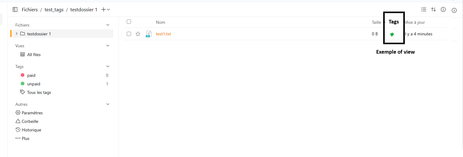 In folder when i have my list of files i have no possibility to see the tags of every files. i can see this by go to more actions → more → propriety and now i see the tags but only for one file.