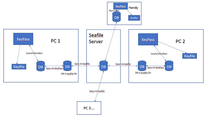 So, to summerize: If you are a very careful user, syncing a keepass database with such services like Seafile over different devices, can work, but is very, yeah let’s say, dangerous. (Can be with a simple document file and a syncing services, too .)