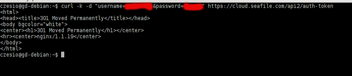Currently I am playing around with api documentation available here https://manual.seafile.com/develop/web_api_v2.1.html but I get stuck at the very beginning (Quick Start → obtain auth token). My curl command is not working as expected. Can you guys have a look at this?