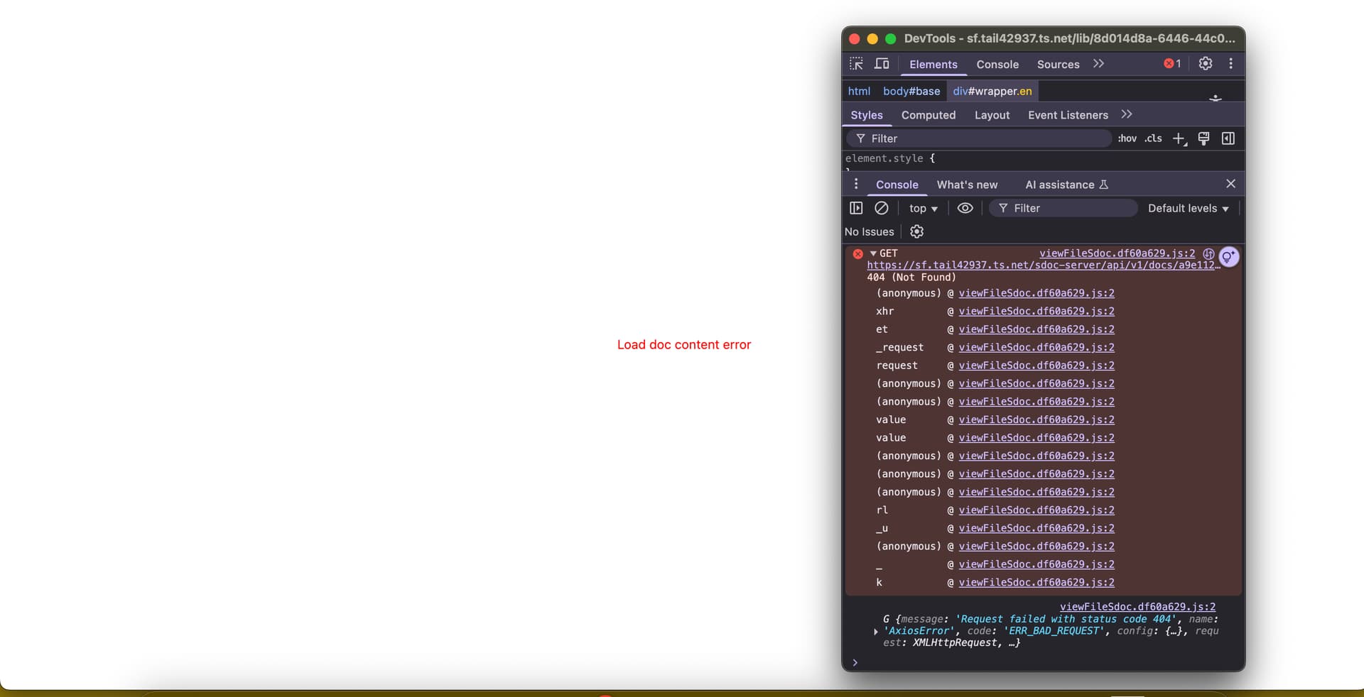 I’m getting this in the browser: Cannot GET /sdoc-server/api/v1/docs/3137cc78-380c-4f5a-8b1c-abc445c78175/, with a response code of 404.