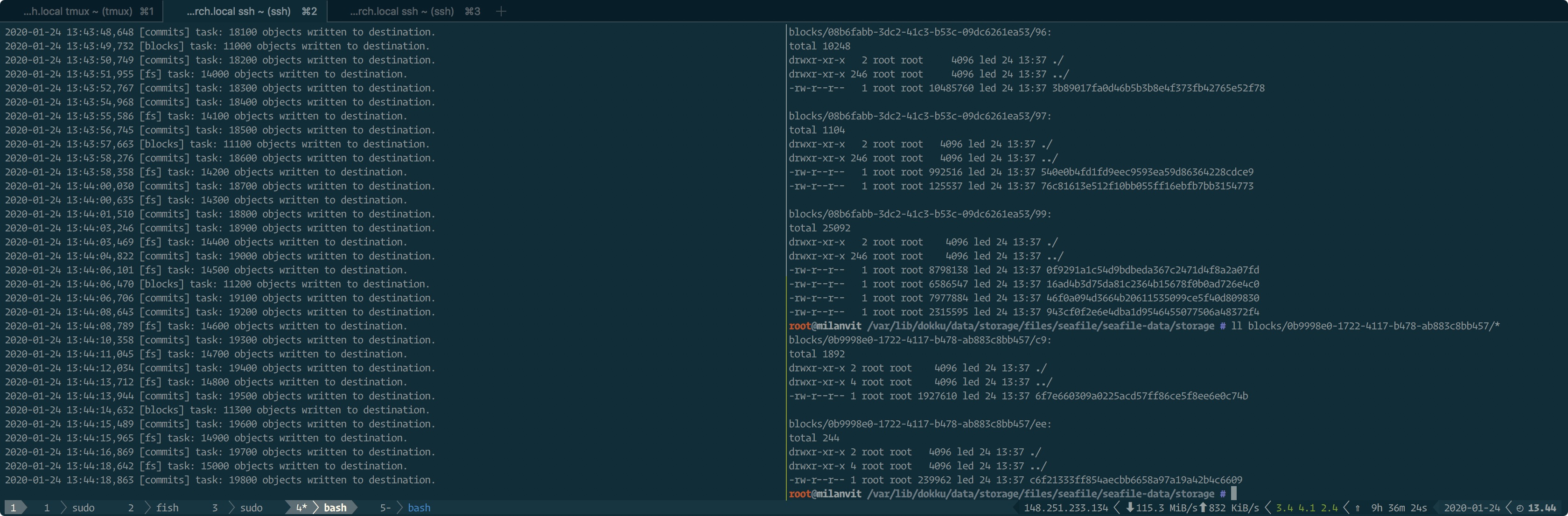 My question is: can I migrate the existing data (about ~150 GB, so I’d prefer not to do it through my computer) from one Seafile instance to another, from S3-like back-end to a normal filesystem? The official documentation seems to imply that much (“Seafile supports data migration between filesystem, s3,…”), but how would I go about doing it? Would something like this work?