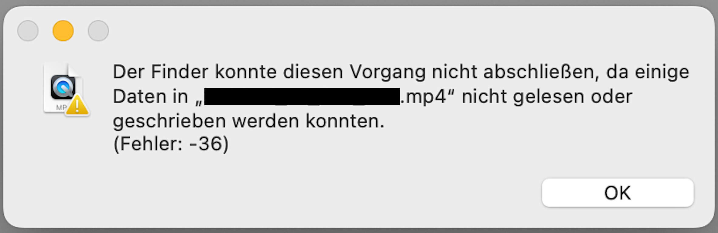 It starts copying and shows a notification of Seadrive “starting to download file xyz” and then at some point it stops and the copy progress window shows Error -36. I attached a screenshot in german, it basically says ‘Finder could not complete this progress because some Data in “xyz.mp4” couldn’t be read or written (Error -36)’