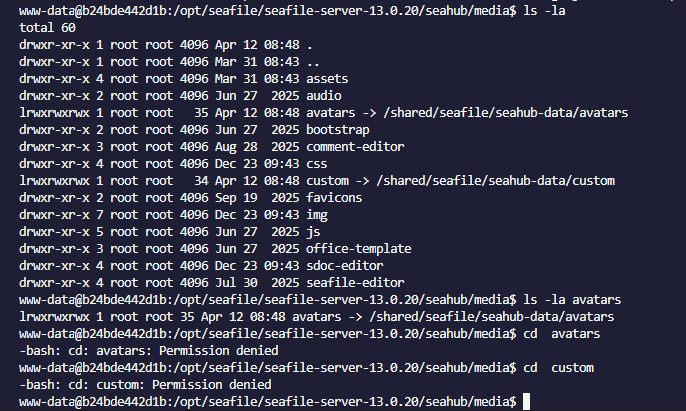 /opt/seafile/seafile-server-latest/seahub/mediadirectory. - Verify if