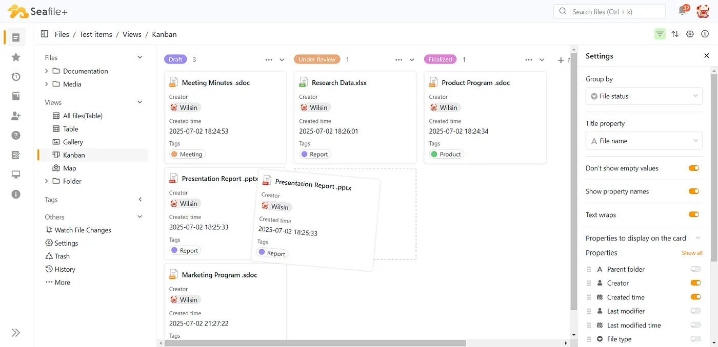 Advanced Views – Kanban, Gallery, or Map views to visualize status and progress at a glance.