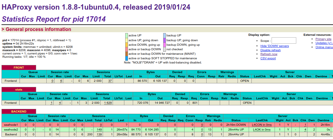 In all three cases, seafile was not usable anymore but the front node was still accessible to haproxy. “Status UP”. Only when I stopped the seafile service, haproxy recognizes the node as “Down” and no longer forward requests.